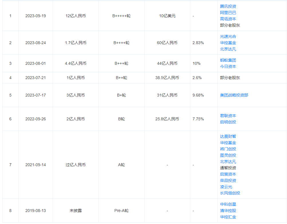 名校光環+爆火的AI,雙層buff加持下,智譜AI可謂説是資本眼中的寵兒。今年7月至9月,智譜AI直接拿下5輪融資,企業估值高達100億元,是國內 AI 領域獨角獸企業,其背後的投資方包括美團、阿里、螞蟻集團、高瓴資本等多家投資機構。