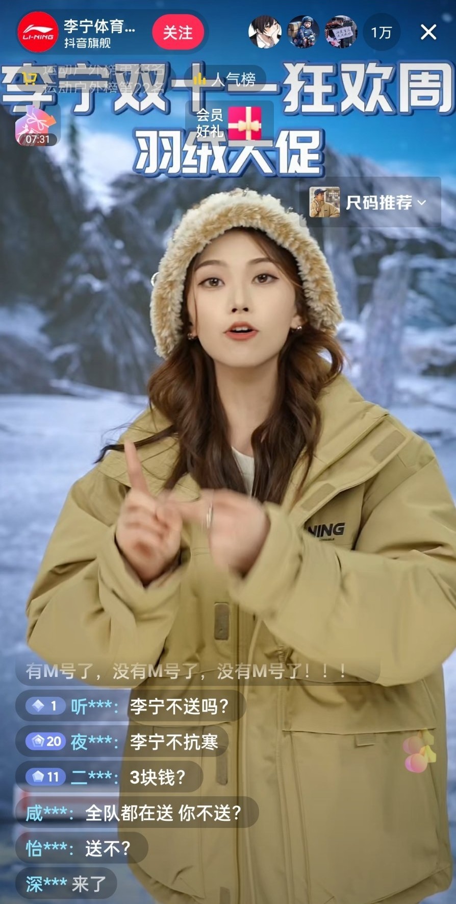 網友在李寧直播間購物時發現,直播間內有大量網友發彈幕吐槽李寧。據瞭解,近日英雄聯盟全球總決賽八強賽,LNG以0:3的成績惜敗T1止步八強,賽後李寧直播間便湧入大量網友吐槽“問責”,並導致直播停播。