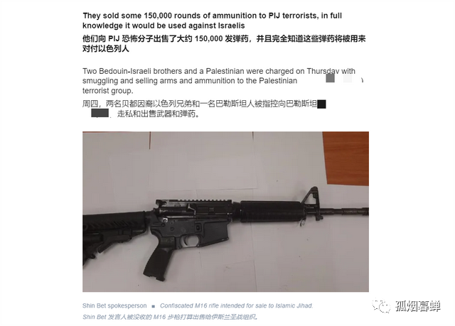 為什麼?因為這種魔幻現實主義到估計就連馬爾克斯本人看了都要大呼魔幻的破事,之前在以色列其實就發生過。今年2月上旬,以色列媒體第24新聞頻道曾經披露過一則新聞,説是有3名以色列國防軍遭到了以安全部門辛貝特的逮捕,原因是這三根老油條涉嫌向一個巴勒斯坦武裝組織(不是哈馬斯)走私一批武器裝備,其中包括美製M-16步槍、數千個槍支零部件,以及至少15萬發配套彈藥。