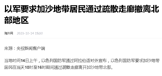 當然,這一意圖暫時是不可能明確表示出來的。以色列方面的説法,是要讓加沙北部居民搬離家園為加沙和以色列之間留出緩衝。對於以色列政府而言,由此引發的國際輿論壓力並不是他們在意的,畢竟身為美國佈設在中東的棋子,以色列也同樣在利用美國的背書。