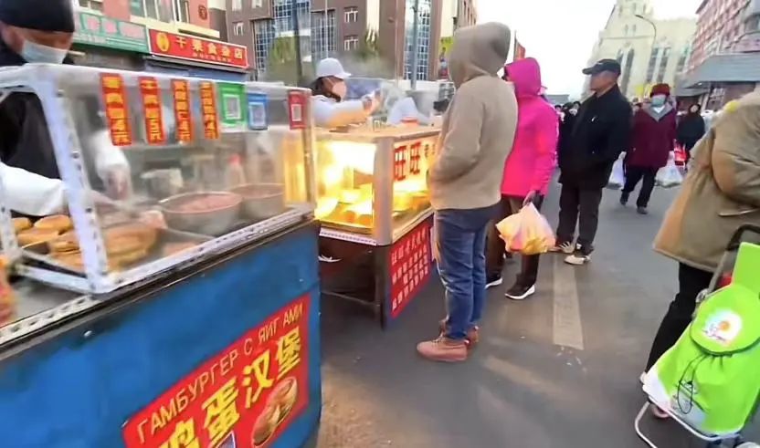 熟悉的是東北早市瀰漫着的煙火氣,每個攤位展示的各種各樣的食物,以及東北人特有的吆喝口音。