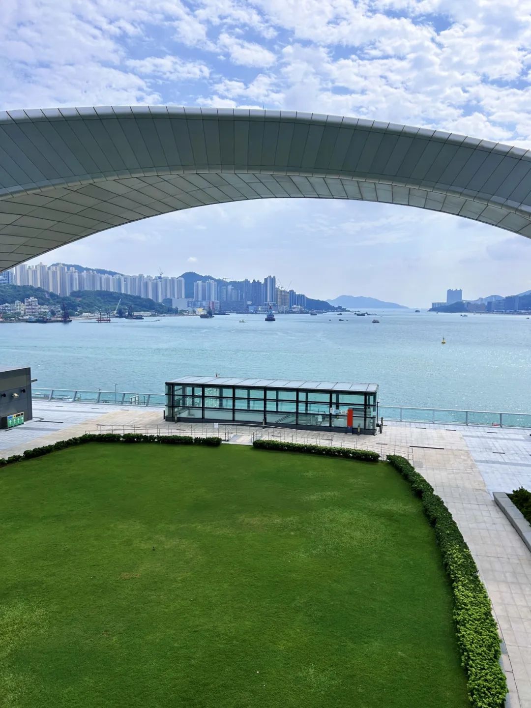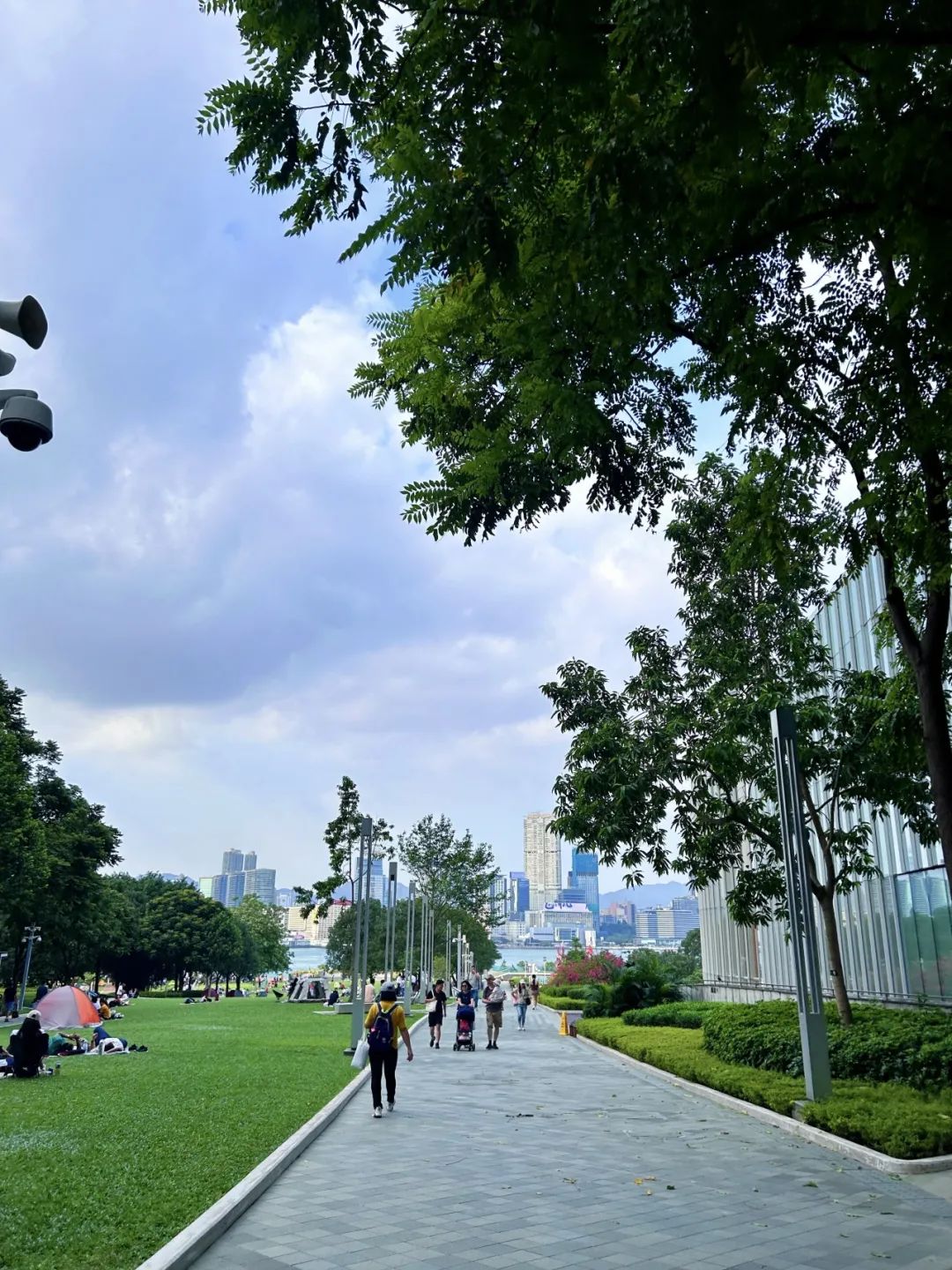 公園正對維多利亞港,視野開闊,坐在草地上就能將維港美景盡入眼簾。