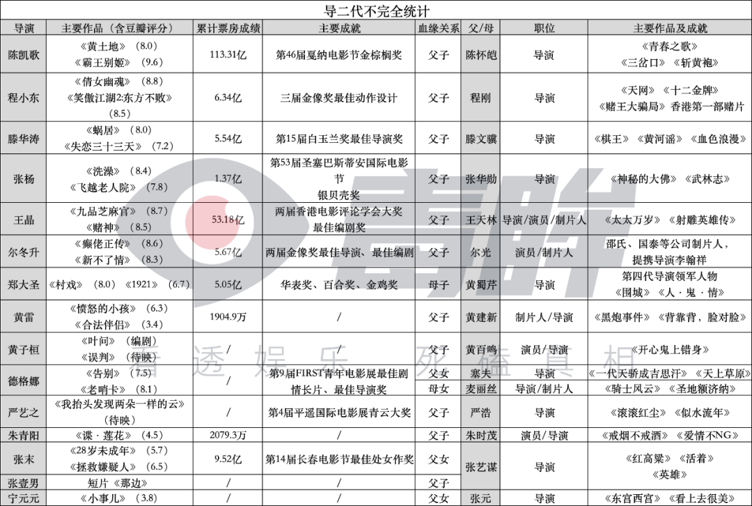 固有的家族性也隨之打破,整個中國導演培養與選拔體系變得多樣,導二代成為更特殊的人才輸送通道。