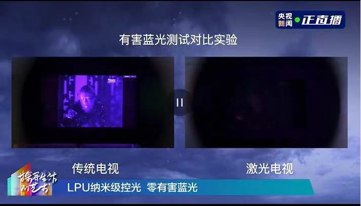 ▲激光電視和傳統電視有害藍光測試對比實驗。