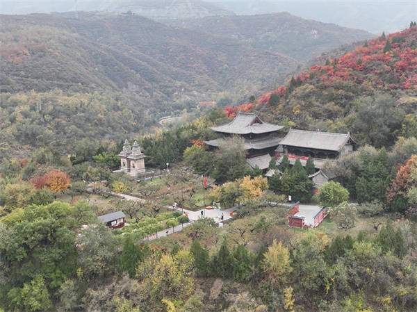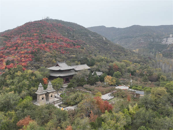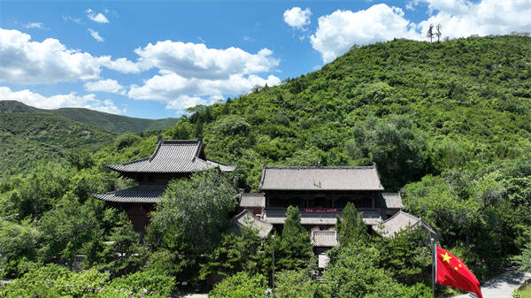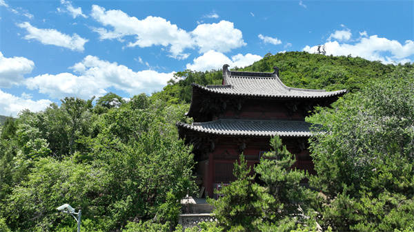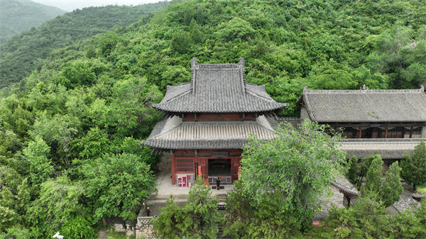鐵佛殿始建於隋末唐初,後因戰亂被毀。如今的鐵佛殿是2009年參照唐代皇家廟宇的建築風格在原址上修復的。這座建築風格為重檐歇山頂,規模等級十分高。整體感覺顏色單一,質樸雄厚。樓檐舒緩,斗拱碩大,榫卯結構,抗震係數高。與殿內的唐代鐵佛風格協調一致。大殿正中蓮花須彌寶座上高坐的是釋迦牟尼佛像。高2.6米,重4.2噸,與旁邊迦葉立像已經歷經了一千三百多年的歷史。
