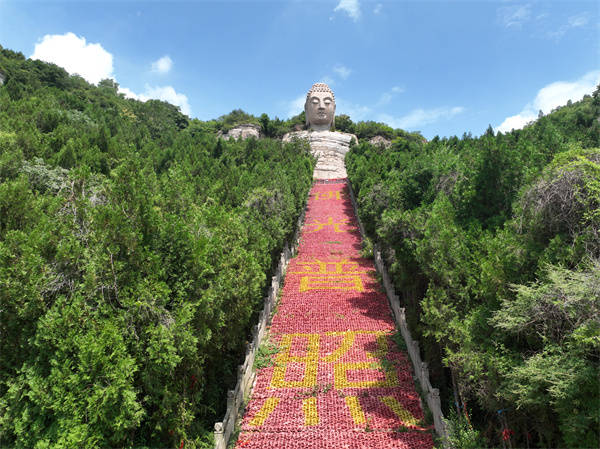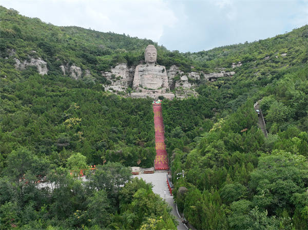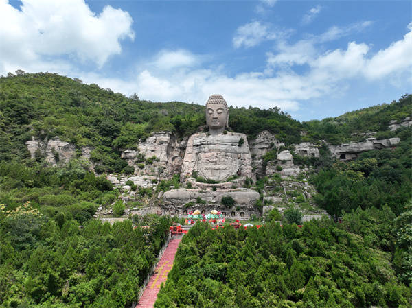 蒙山大佛距今約1470多年,大佛為結跏趺式釋迦牟尼坐像,高63米,開鑿於北齊天保二年,是有確切紀年,開鑿最早的摩崖石刻佛像,比著名的樂山大佛還要早162年。