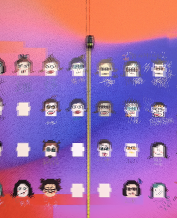 為了簡單看出攝像頭之間有沒有對齊,我們在辦公室的海報牆上貼上了一個筆直的捲尺,剛好和地上的一根黃色網線垂直。