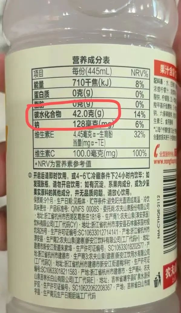 每瓶水溶C100都含有42g糖,一瓶頂半碗米飯。