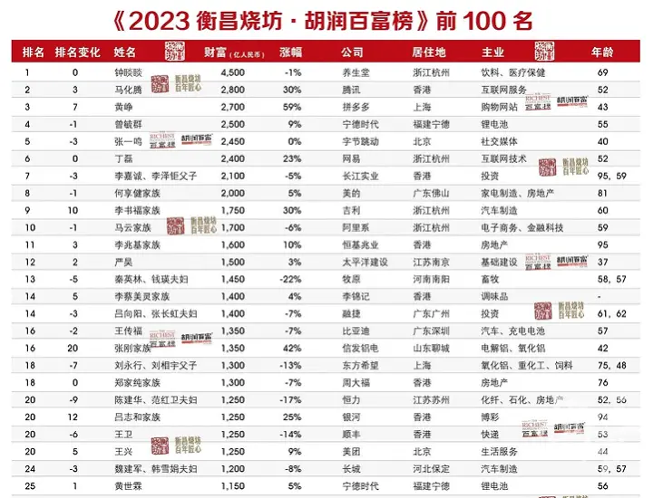 不過,還有11位富豪在2023胡潤百富榜上有名,這11人中有3位還在百名之內。