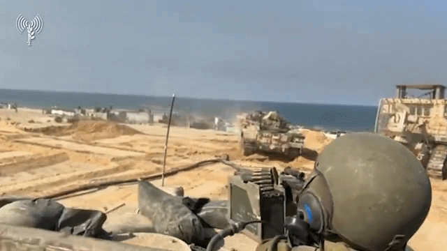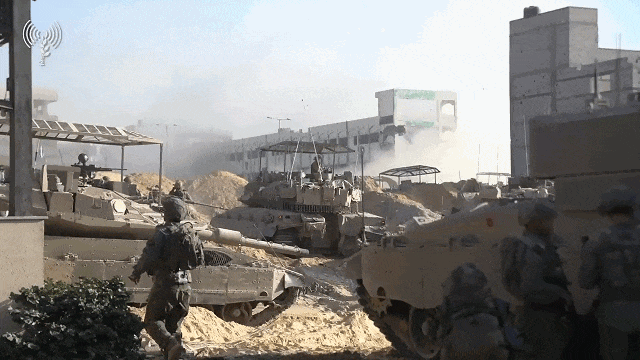 從以色列軍隊的戰役佈勢來看,以色列軍隊採取的戰法,似乎是南堵北攻——南部在加沙地帶中部的乾涸河牀附近,用軍用推土機推出了六七個土圍子,外帶挖了一條橫貫公路的大溝,每個土圍子裏邊擺上了一個連級兵力,避免抵抗組織離開加沙城區向南撤退;然後主力部隊第933“吉瓦提”旅等部隊在北部往南推,像擠牙膏一樣把抵抗組織擠到南部堅固防線。