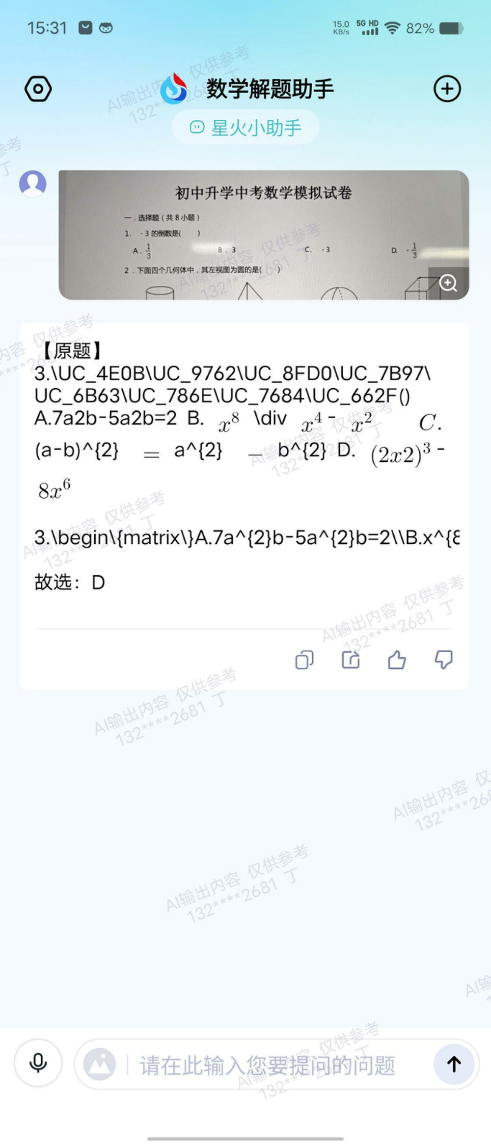 值得一提的是,訊飛星火助手的數學解題助手會自動識別圖片上的數學問題,只需要拍照或者選擇手機中的照片,然後星火助手會自動識別,選中問題,給出精準的答案。
