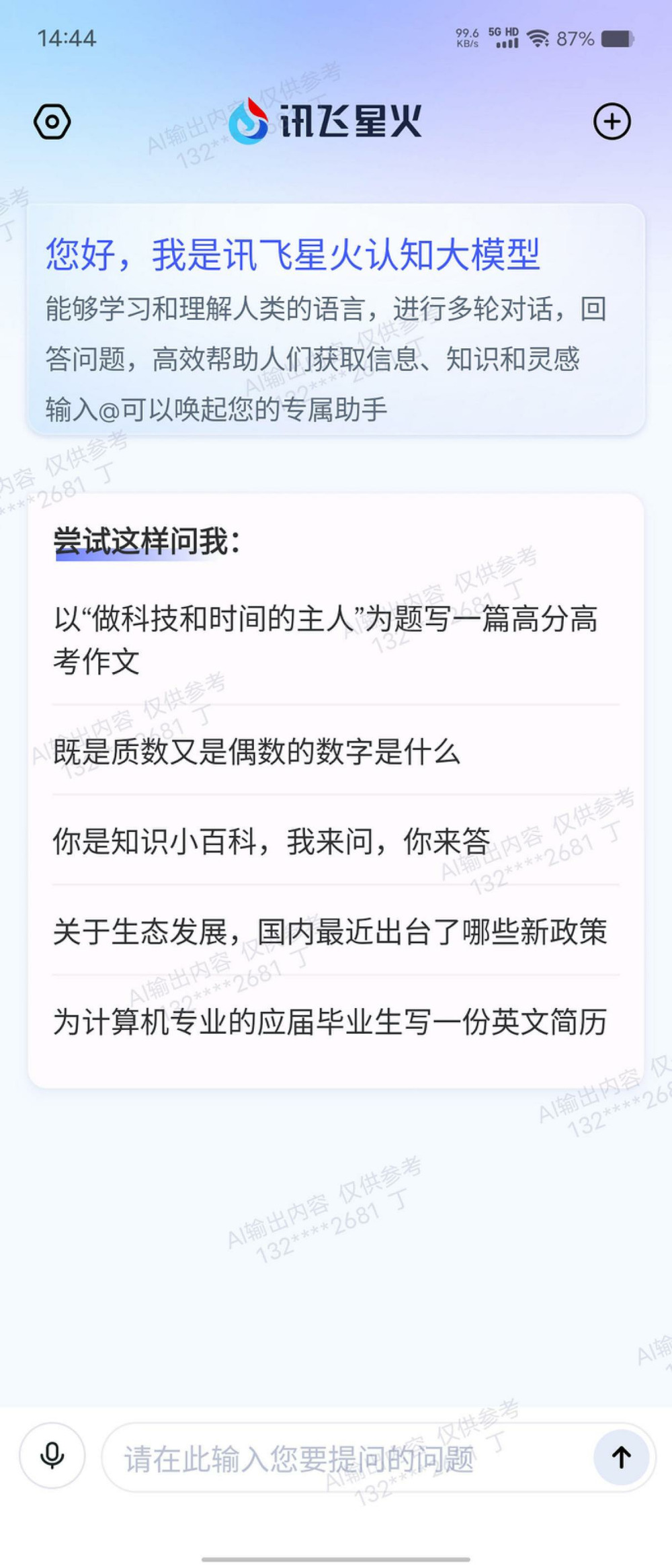 Chat主界面即可使用星火APP功能,主要包括對話界面、語音輸入、調用助手、多模態交互等主要功能,這次我們主要體驗是的安卓移動端和PC端的功能。