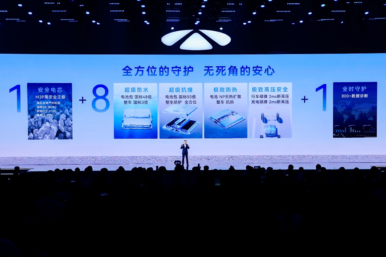李學用用“全方位的守護,無死角的安心”來形容風雲的安全性能。全方位守護包括了整車安全、電池安全、信息安全。為了實現這樣一個全維安全,風雲以高強鋼與鋁打造了輕量化太空艙,搭配大面積使用的熱成型鋼和超高強鋼,實現了超規格的整車安全;守護者電池安全系統提供三重安全標準,抗熱、抗撞、抗水,保持電池的全週期安全。風雲還配置了基於歐盟R155 CSMS/R156 SUMS體系認證的端、管、雲一體安全密鑰,全面為用户守護信息安全。