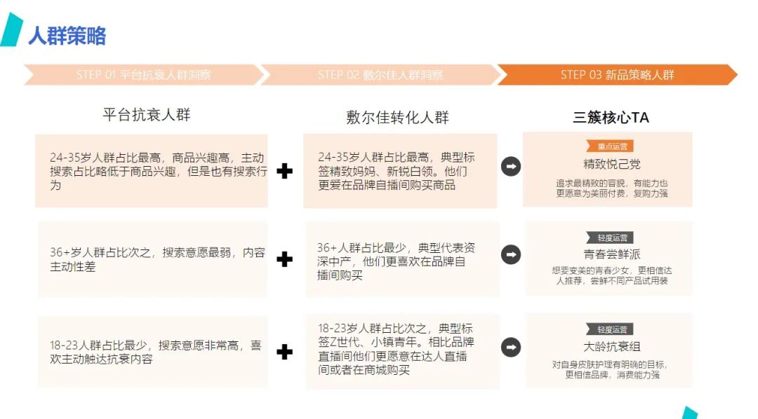 比如,成熟品牌通常已經建立了一定數量的忠實客户基礎,通過各種會員活動就可以在大促中取得銷量增長,但在面臨市場飽和、競爭加劇等情形時,即使是成熟品牌,也會希望吸引更多新客户來實現增長,開拓新市場份額。因此,品牌在大促前需要先找到自己的“人羣方程式”。