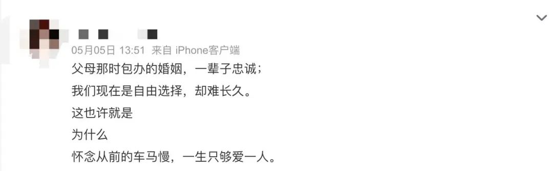 有人甚至懷念起包辦婚姻,“在婚姻裏相識相知,他們才是真正的相濡以沫。”