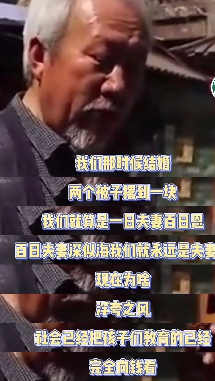 “你唐朝有兩個饃就可以娶個媳婦,民國時代的話有一碗米飯就可以娶個媳婦,我們那個年代,兩個被子撂到一塊,我們就算是一日夫妻百日恩……”