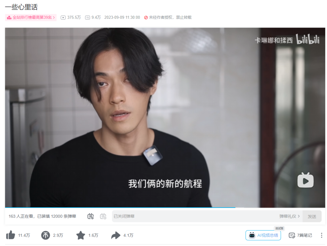 巧合的是,他在最近發佈的視頻裏剛剛説因為抑鬱症,準備暫停工作,要暫時退網——