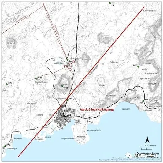 可能的噴發源呈線狀,幾乎穿過了格林達維克鎮,運氣好噴發在海上,運氣不好…….