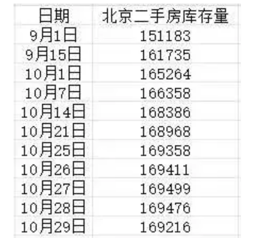 截至10月北京地區二手房掛牌數量達到169642套,創下新高。