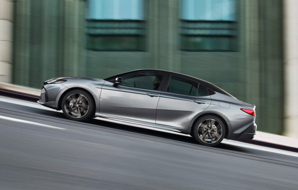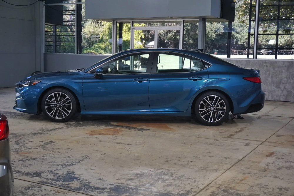 而尾燈組也採用了相呼應的C字造型設計,並未使用時下最流行的貫穿式尾燈設計。車側依舊是大家非常熟悉的凱美瑞身軀,擁有鮮明的肌肉線條。