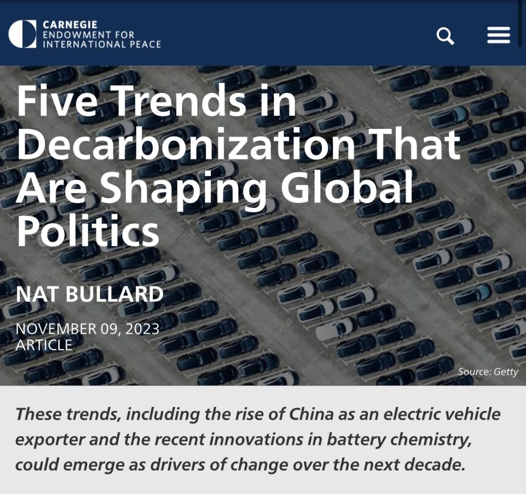本文為文化縱橫新媒體原創編譯“技術革命的衝擊與重構”之七,編譯自卡內基國際和平基金會網站,原題為《影響全球政治的五種脱碳趨勢》(Five Trends in Decarbonization That Are Shaping Global Politics),****僅代表作者觀點,供諸君參考。