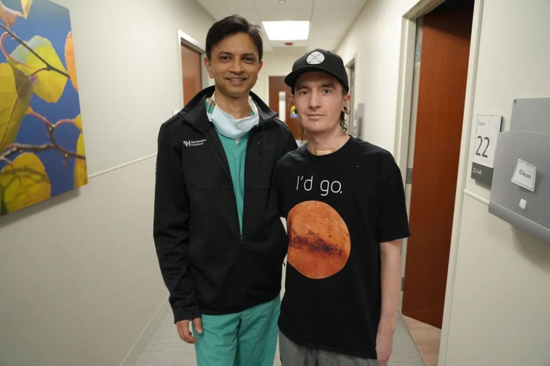 美國西北大學醫學中心胸外科主任兼坎寧胸科研究所所長安奇特·巴拉特(Ankit Bharat,左)和戴維·鮑爾(Davey Bauer)。圖源/Northwestern Medicine