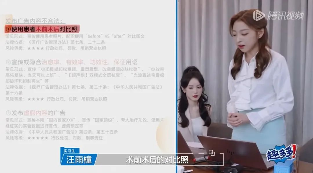 介紹方案時詳略得當,優先講明重點,還信手拈來,把在客户公司門口看到的醫美海報當做案例拆解——由於海報涉及術前術後的對比,在內地使用的話會涉及違反《醫療廣告管理辦法》的相關規定。