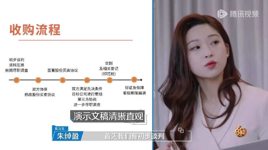最近一期節目中,八位實習生迎來團隊戰,每組四人。任務是向準備收購內地醫美公司的香港客户,提供法律支持的方案。