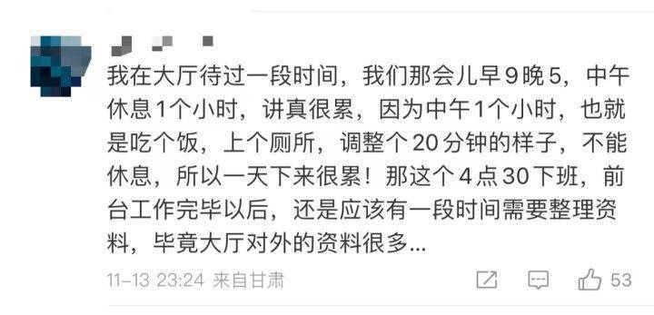更有人提議,既然是為百姓服務的窗口,是否可以調整作息時間,給來辦事的人一個更好的體驗。