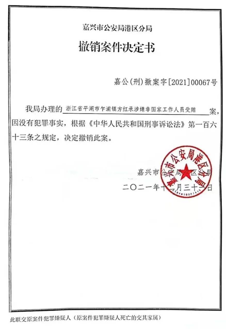 直到2022年9月份,方紅承、方紅興(方紅承弟弟)被平湖市檢察院以涉嫌非國家工作人員受賄罪批准逮捕。