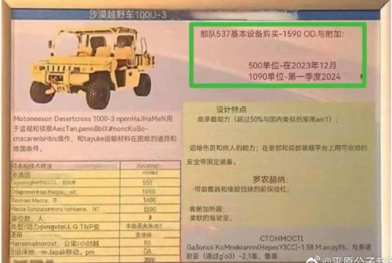 別忘了,從今年開始,中國已經是世界汽車出口第一大國。其實不光民用車,俄羅斯軍方也在大量採購中國產的全地形通勤車,在俄烏戰場扎波羅熱方向,俄軍第42師開始使用從中國引進的全地形越野車。同時出現的還有購買數量在今年12月前交付500輛,2024年交付1059輛。這款車不僅可以適應各種複雜的戰場地形,還能夠運載大量戰備物資,甚至能夠裝載火箭等重型武器,極大地提升了軍隊的機動性和作戰能力……其低矮的車身和優秀的隱蔽性,使其在戰場上具有得天獨厚的優勢。因為其高效的戰場運載能力和全面的適應能力,俄羅斯對這款車眼饞已久。