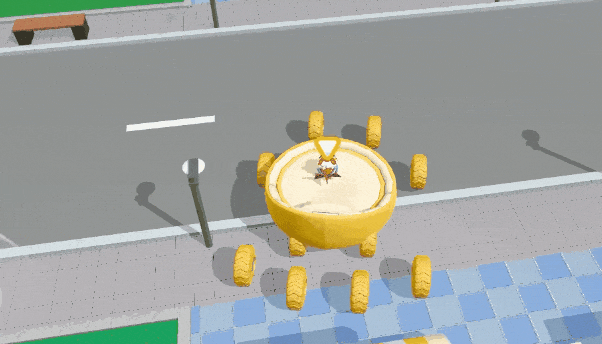 據瞭解,此次上新的【自定義載具】功能全程支持拼接式操作和自主參數設置。在操作便捷度方面,用户只需將載具核心、座椅、輪子等組件拼接到一起,即可快速生成一輛可駕駛的載具,且可支持多人同乘、多人共同駕駛。而在創作自由度層面,除了調節參數實現加速度、車輪旋轉角度設置之外,「載具車輪輔助轉向功能」堪稱一大亮點,不管用户設計出多麼奇形怪狀的車輪——即便是三角形車輪,都能自動計算出輪子在行駛時的轉速和朝向,實現載具的正常運行。