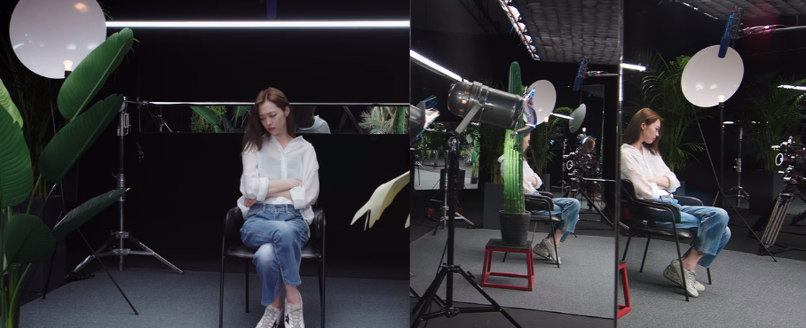 她先是笑了笑,接着皺眉低頭,甚至,都快要哭出來了,此時,鏡頭用了三個角度同框,彷彿是記錄,也更像是“盯着”她的一舉一動。