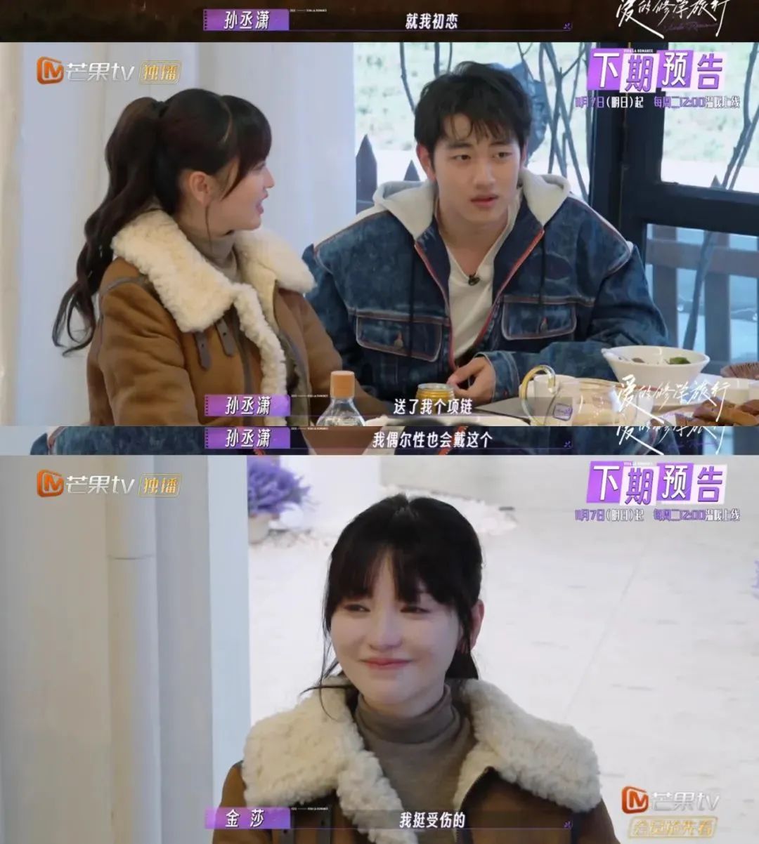 而飯桌上吃飯時,金莎會習慣性給孫丞瀟遞紙巾,提醒他擦嘴;男生説話時,金莎也會用過來人的姿態在旁邊提醒時間地點等社交細節。