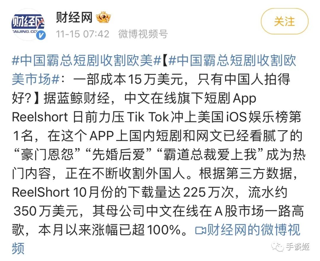 本週,一款名為reelshort的網劇短視頻app在海外多國登頂暢銷榜榜首,甚至超過了字節跳動旗下tiktok,引起了商界投資界的廣泛關注。但隨即又受到了股民和一些財經媒體的質疑。
