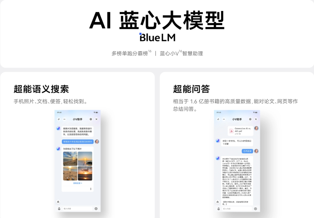 當然,國產廠商中在這方面表現最好的,應當屬於VIVO新出的X100系列手機中的“藍心小V助手”,畢竟X100是全球首個百億大模型在終端調通的大模型手機(道哥將在隨後推出X100的全方位評測,敬請關注)。