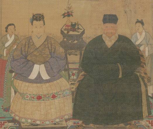 明朝《邵錦畫男女合像圖軸》中明代女性穿直領大襟短襖