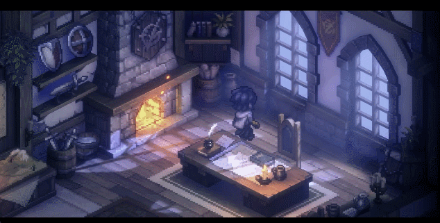 郭磊覺得遊戲要在一眾戰棋遊戲裏脱穎而出,得用上自己最擅長的東西。所以雖然沒有了IP,但項目還是延續了像素美術的方向。而在被《八方旅人》HD-2D技術給驚豔到後,團隊也對美術品質做了進一步的提升。