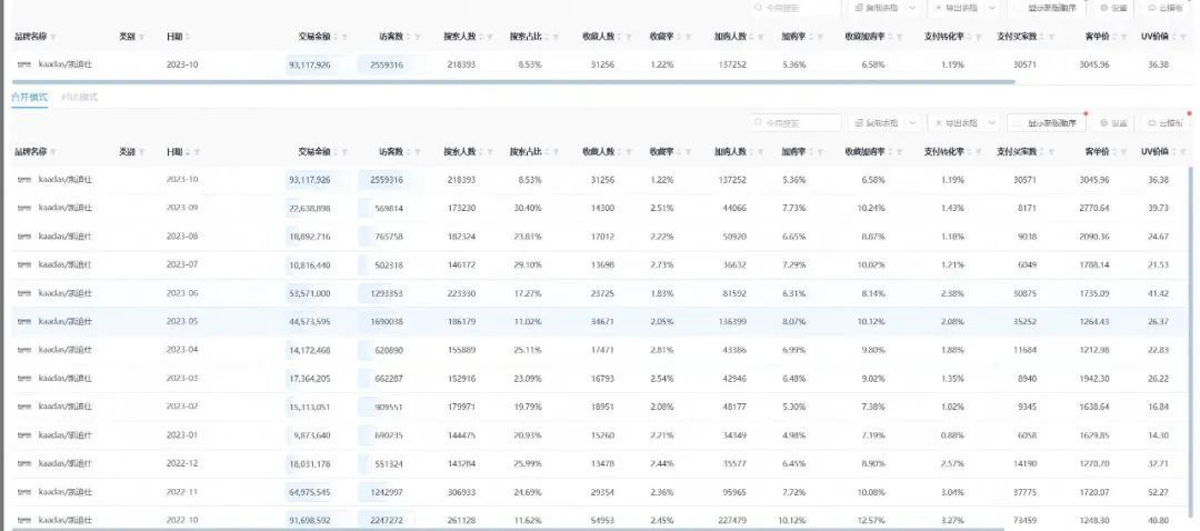 在京東平台,凱迪仕某款單品訪客指數(訪客指數是訪問頁面的用户量多少的指標)僅為507,但成交金額指數高達了2660萬,對比小米的爆款單品,訪客指數為153034,成交金額指數為3714萬。訪客指數僅為小米的三百分之一,成交卻接近小米,這種訪客指數與成交金額的不正常比例也是數據異常的明顯表現。