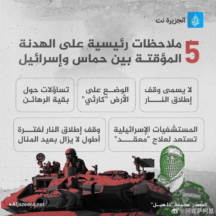 半島電視台報道,卡塔爾外交部稱加沙停火推遲到週五早7點開始,第一批人質交換將於16點進行,喘息期將持續4天