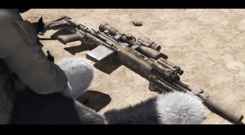 除此之外,這支Mk14還配備了激光指示器、消音器、兩腳架、戰術手電這一大堆配件,簡直就是顆聖誕樹。要知道,Mk14本來就是因為太沉被淘汰的,再加上這麼多配件,就算波塔斯基是個強壯的黑人(黑兔),這槍也絕對是嚴重超重了。