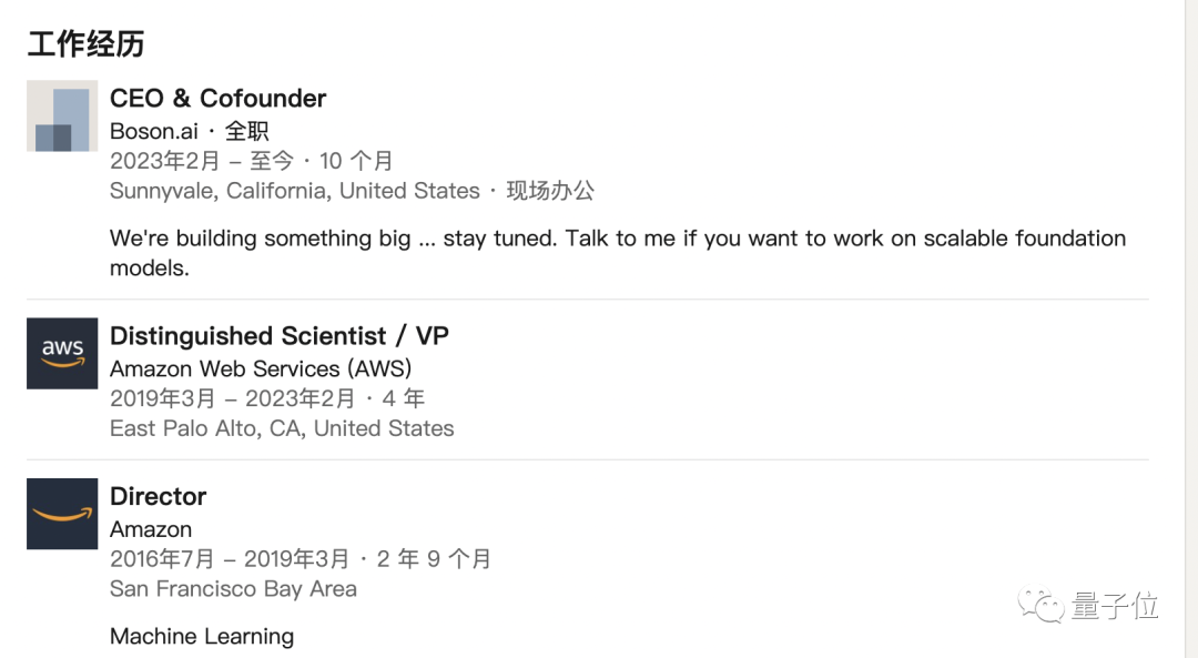 包括李沐的領英,最新動態仍然停留在他的亞馬遜經歷。