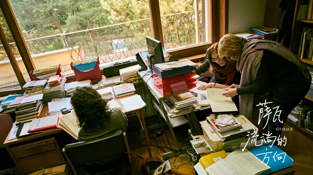 **陳丹燕:**這一段其實是我最滿意的一段,你説的那個聲音的設計是一個墨西哥人做的,我很喜歡她的創作,你看前面最開始我們介紹作家書桌系統等幾個場景裏也加入了一點類似的聲音,做了一些鋪墊,我對那個墨西哥聲音設計説,我這個時候需要有一些思考,對,我想要做一些像在思考的聲音,它的畫面是現實的,但是它的聲音是一種思索,是靈感到來的感覺。