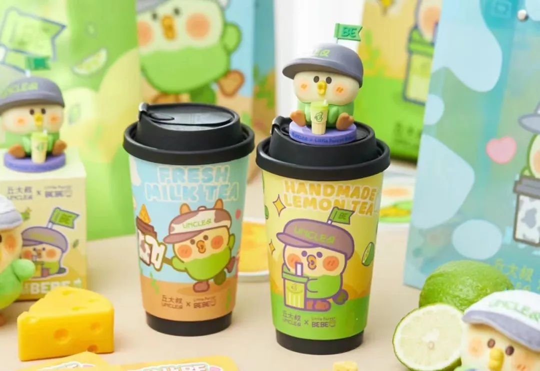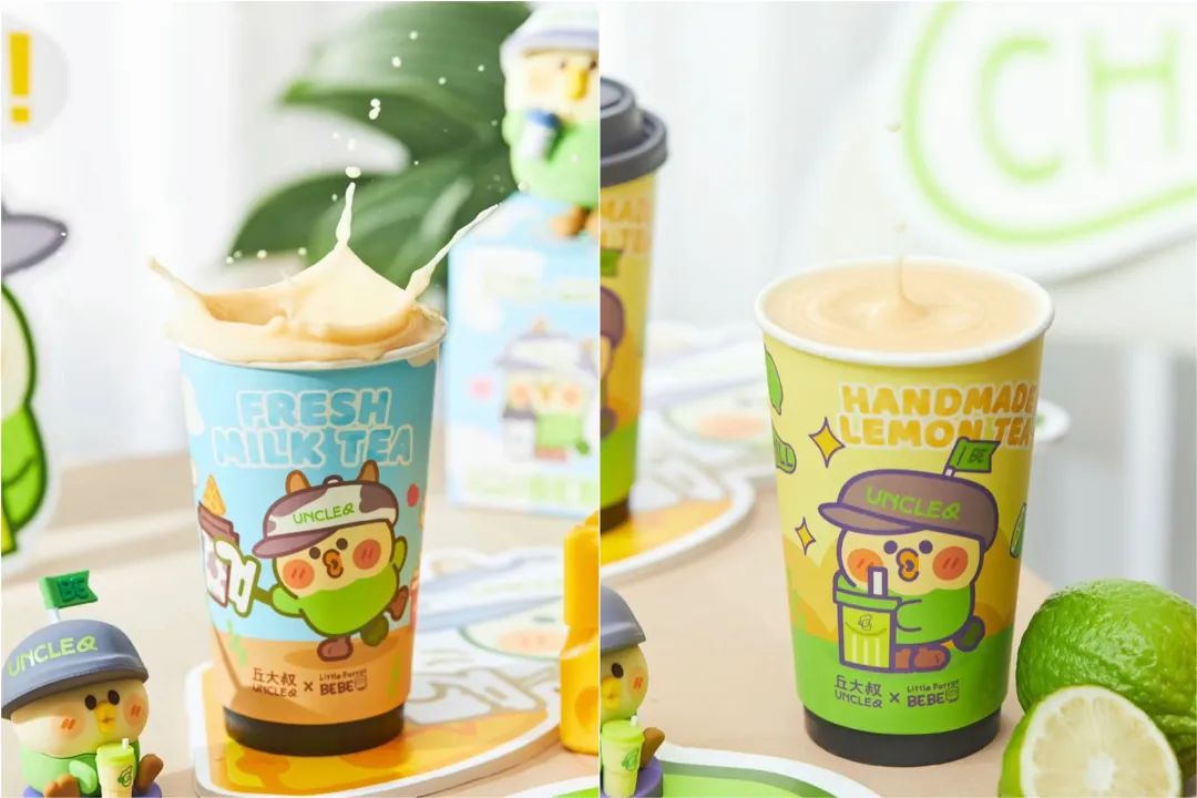 在粉絲力推下,11月22日,丘大叔上架了生打酪系列新品:生打酪奶茶和檸檬生打酪奶茶。伴隨着產品上架,同樣是在粉絲推動下,丘大叔和知名錶情包IP小鸚鵡BEBE做了一波聯名,吸粉無數。