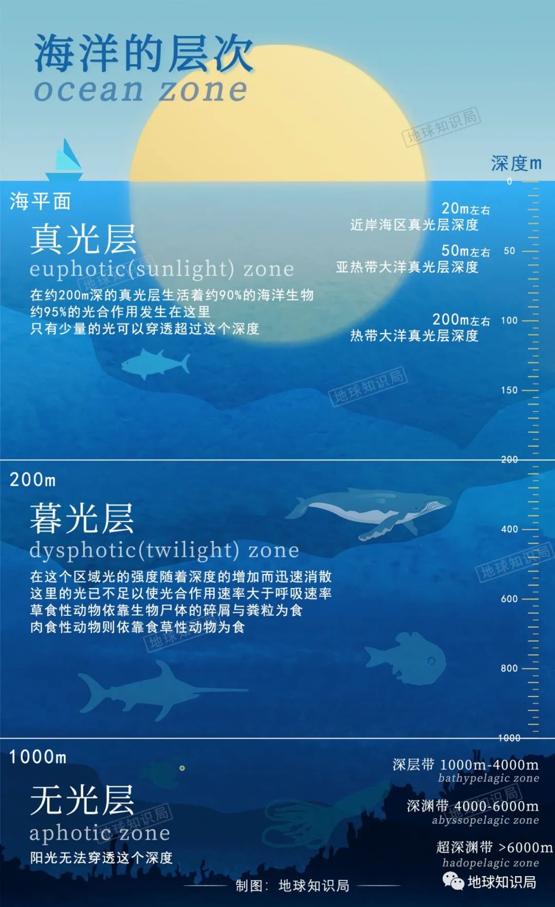 但不同人的眼神,總會有所差異。隨着科技的發展,對海洋光學的研究逐漸進入精密儀器階段。人們將海洋的透光性質用新的的指標——真光層深度來表達,即光線衰減到海面入射光強**1%**處的深度。