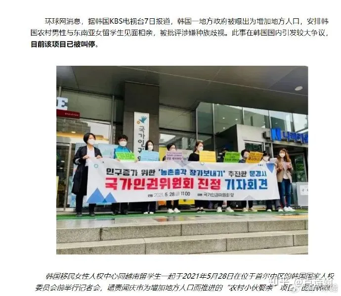 但之前韓國男性外娶比例達到15%的時候,韓國女權急到直接去拉橫幅反對。