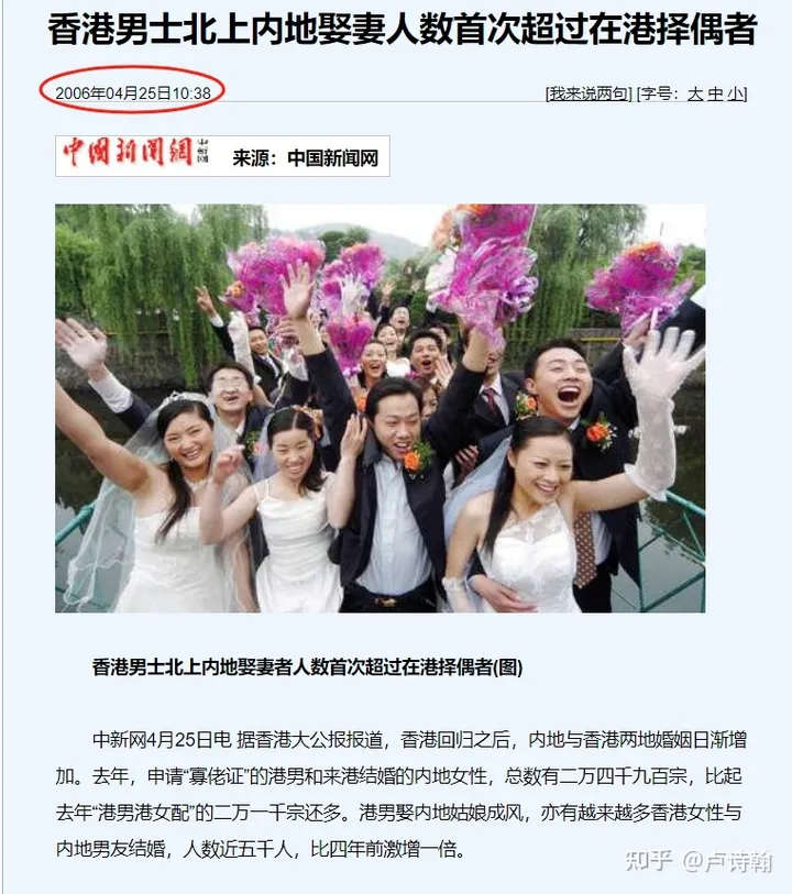 香港女性超高的擇偶要求,和內地懸殊的收入差距,最終結果就是一大波香港男性直接選擇北上外娶。