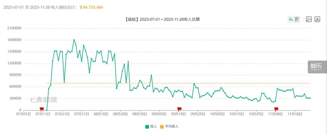 《晶核》新版本流水頹勢明顯(數據來源:七麥數據)