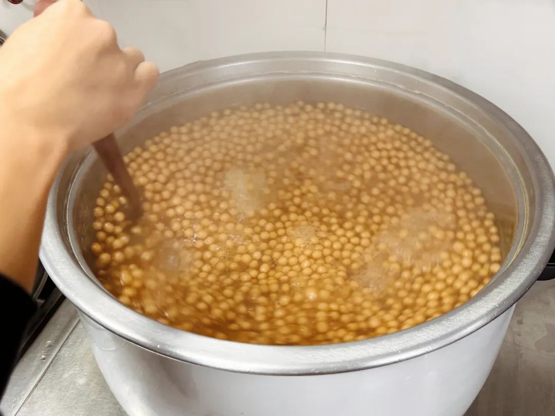 “大鍋一次最多可以煮4L珍珠,從熬煮到使用需要70分鐘左右,根據系統和門店後台數據決定烹煮量,儘量在2小時左右使用完,保證珍珠的最佳賞味期。”陳治海告訴我。