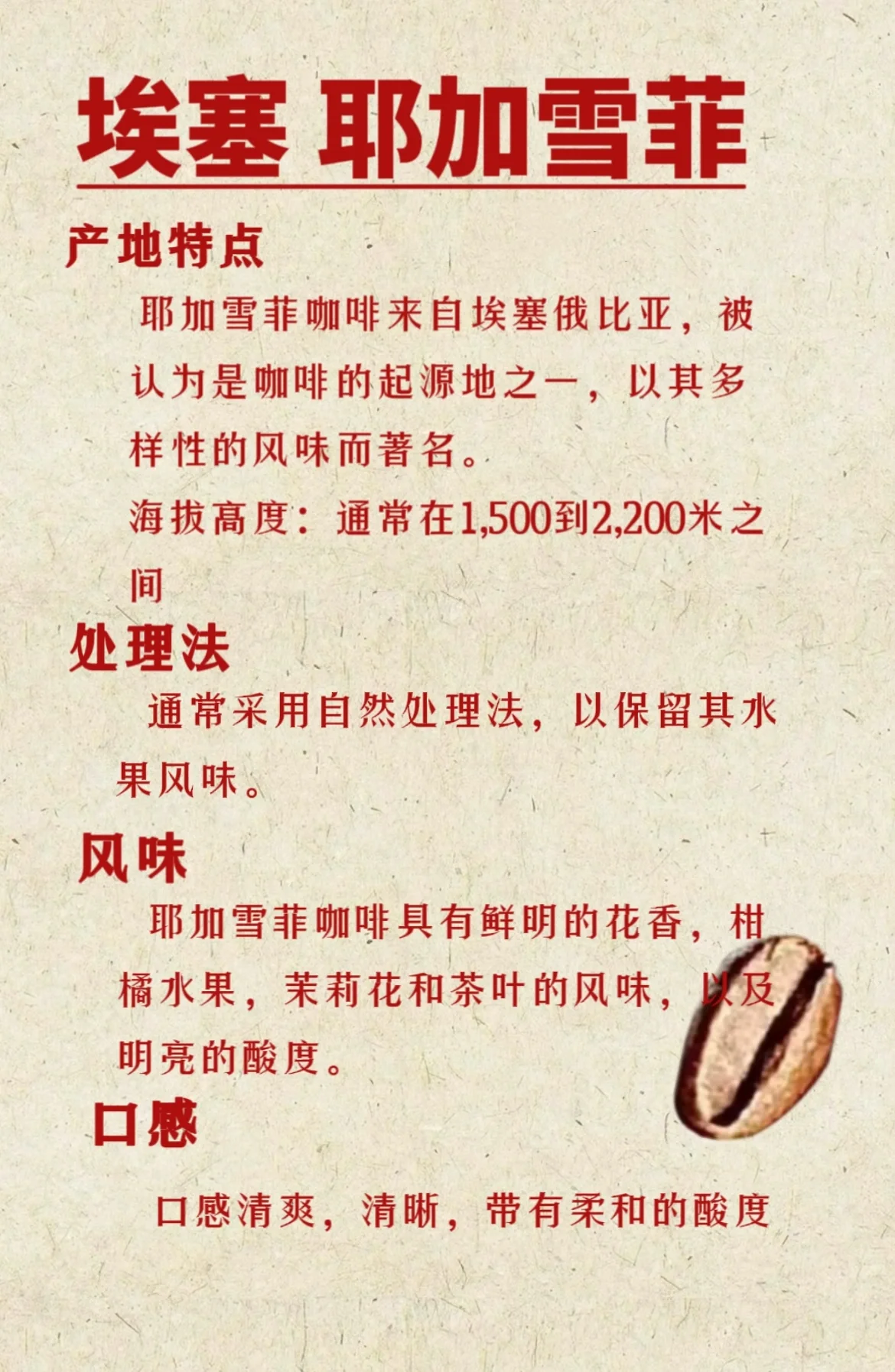 **產地特點:**耶加雪菲咖啡來自埃塞俄比亞,被認為是咖啡的起源地之一,以其多樣性的風味而著名。